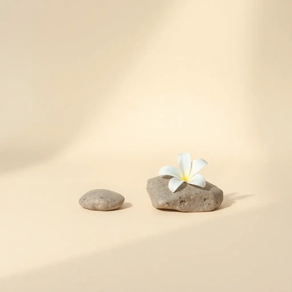 Kattalog Face Cream on Soft Beige Background with Small Stones. AI product photography examples generated by Kattalog AI.