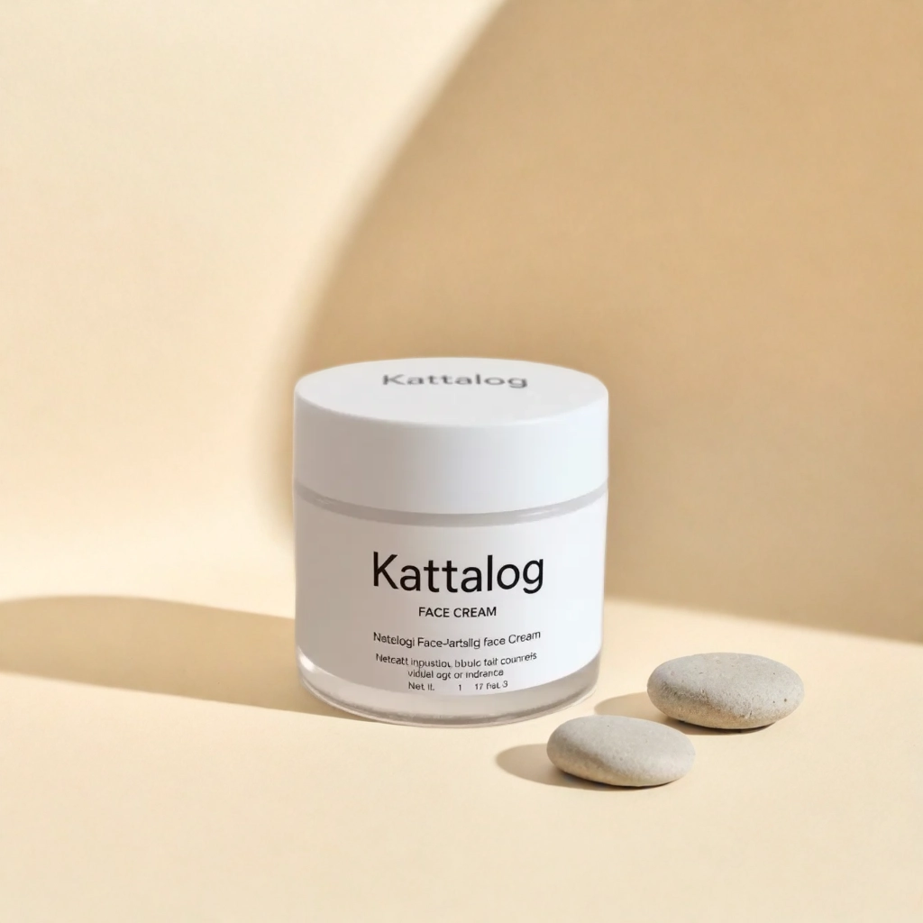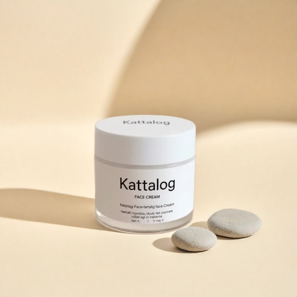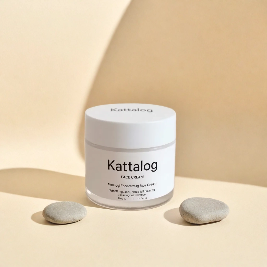 Kattalog Face Cream on Soft Beige Background with Small Stones